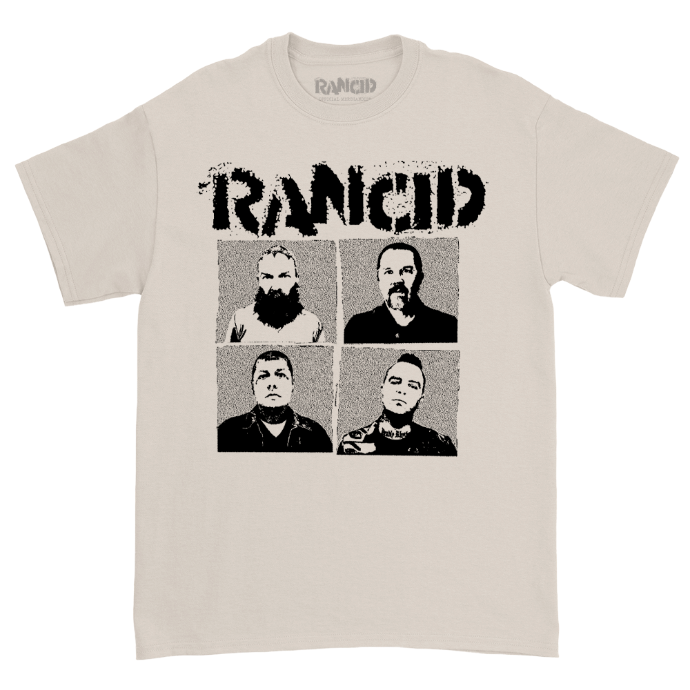 The Rancid Tomorrow Never Comes design, printed on a comfortable, standard-fitting natural-colored t-shirt.